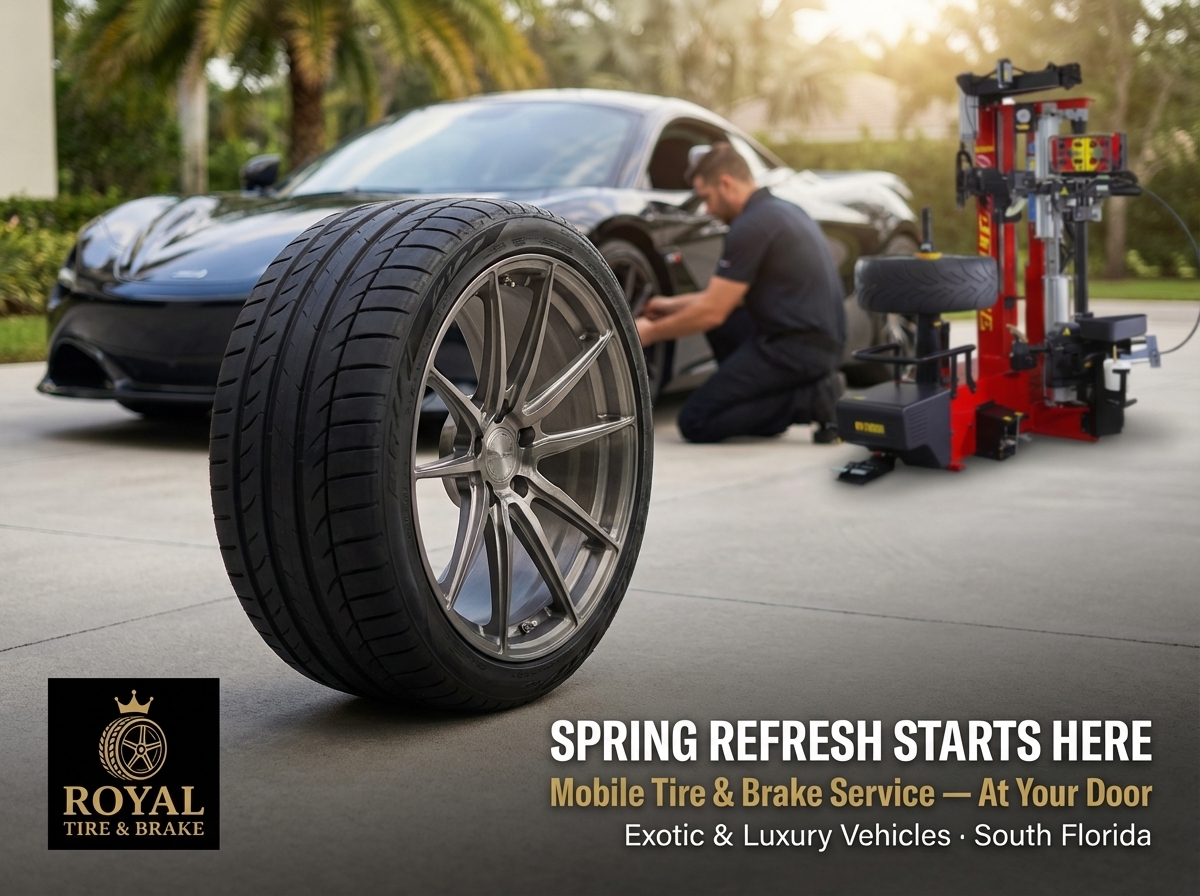 Spring means it’s time to prepare your luxury car for the road ahead. Mobile tire service Miami offers a new level of convenience by bringing expert care directly to your doorstep. Royal Tire & Brake specializes in exotic car tire installation and brake service at home, saving you hours while protecting your vehicle’s performance and safety. Discover why this hands-free approach is the smartest move in your spring refresh plan.